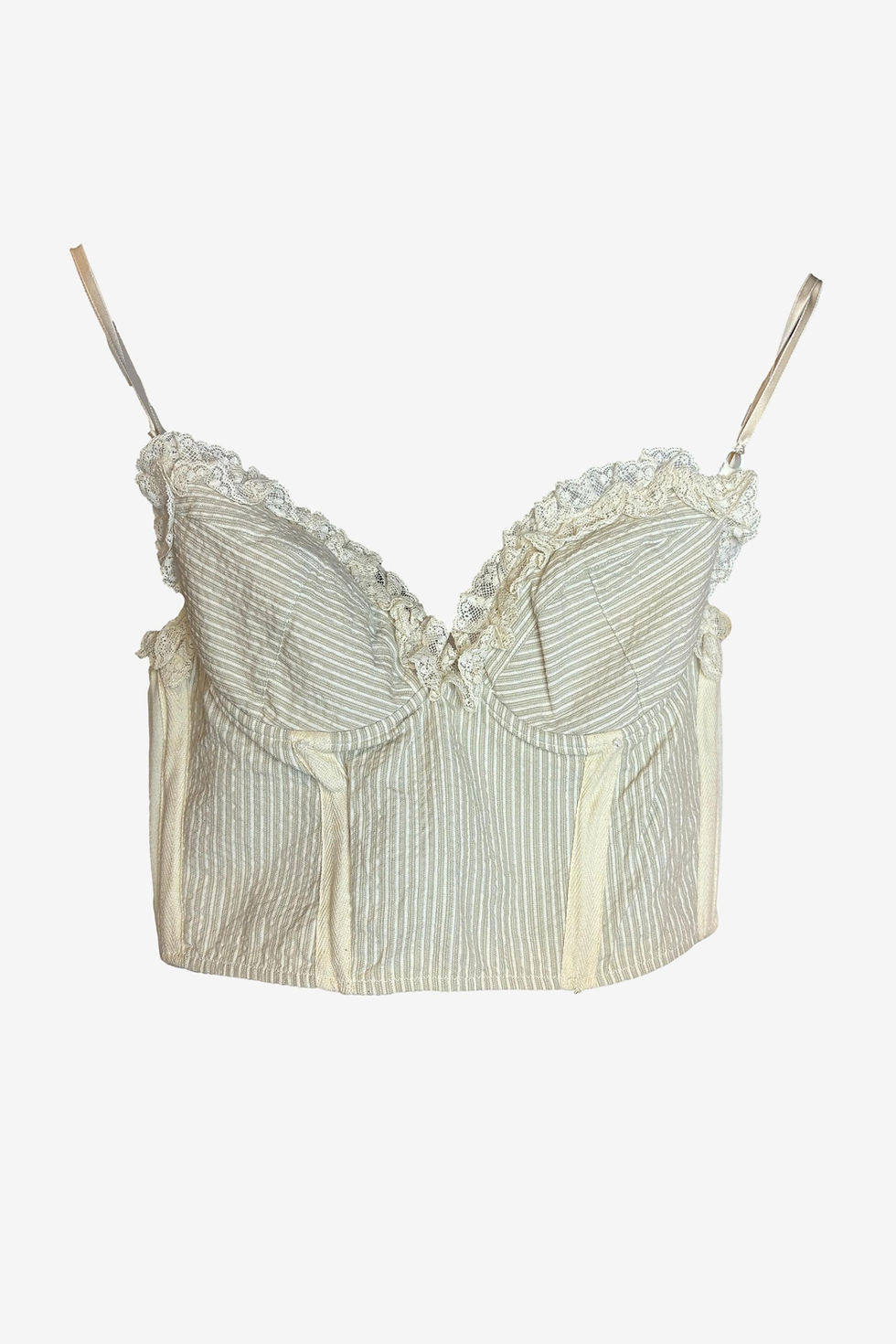 Vintage Blue Pointelle Knit Top With Ruffle Collar