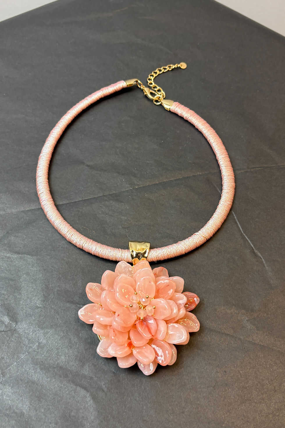 Faux Rose Quartz Flower on Pink Threaded Collar