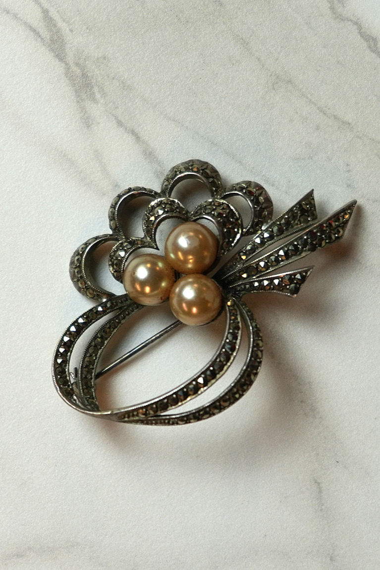 German Sterling and Pearl Brooch