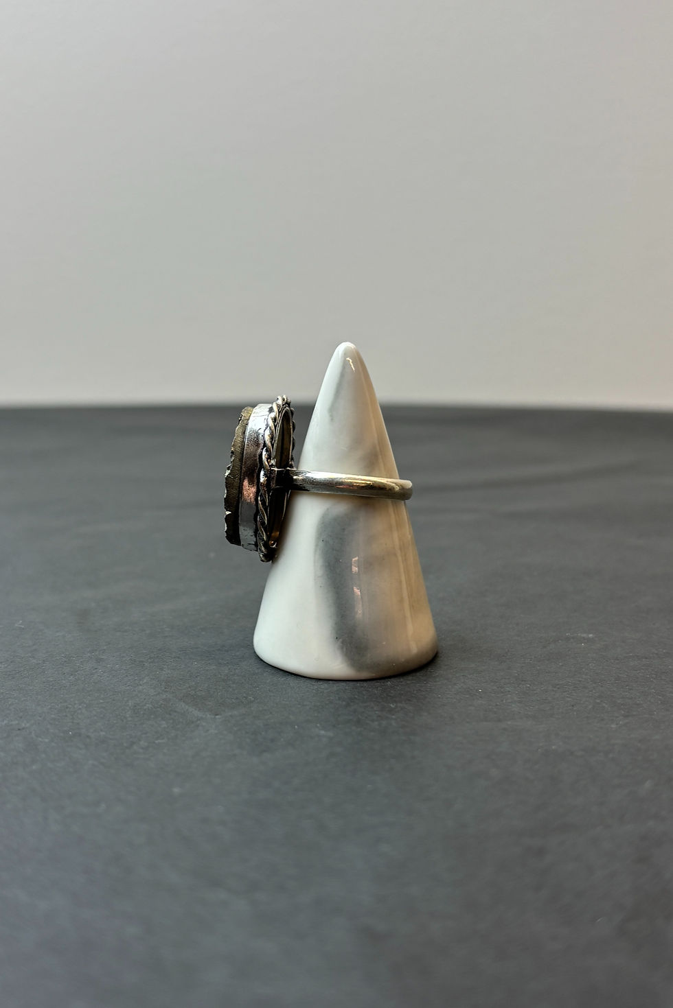 Silver Stone Ring - Metallic Crackle, Small Oval