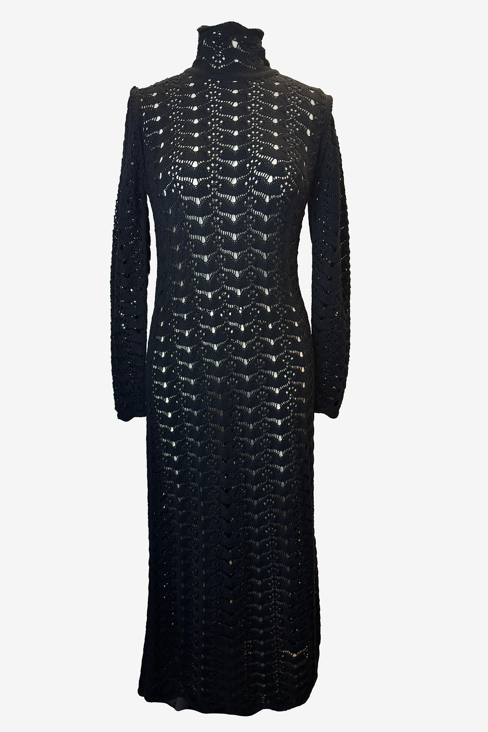 Zimmermann Black Crochet Knit Midi Dress with Belt